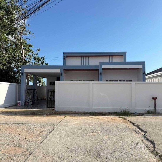 New modern-style house for sale in a peaceful neighborhood of Mabprachan, Pattaya. This newly built 2-storey house features a high ceiling, spacious kitchen, and large bedrooms. Surrounded by nature, with fresh breeze all day long. Ideal for families or retirees looking for a relaxing lifestyle just outside the city center.