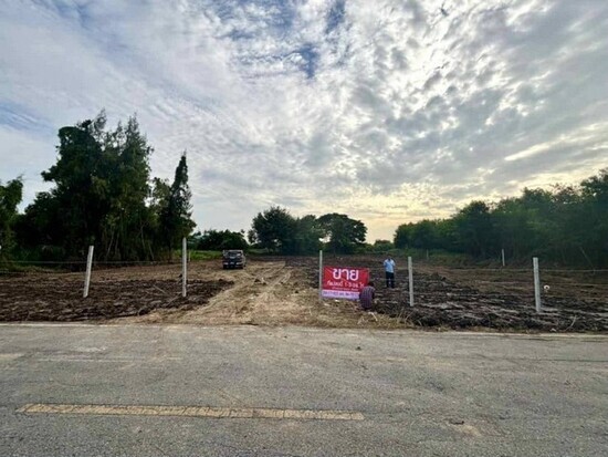 -ที่ดินถมแล้วด้านหน้าติดถนนลาดยางด้านหลังติดคลอง