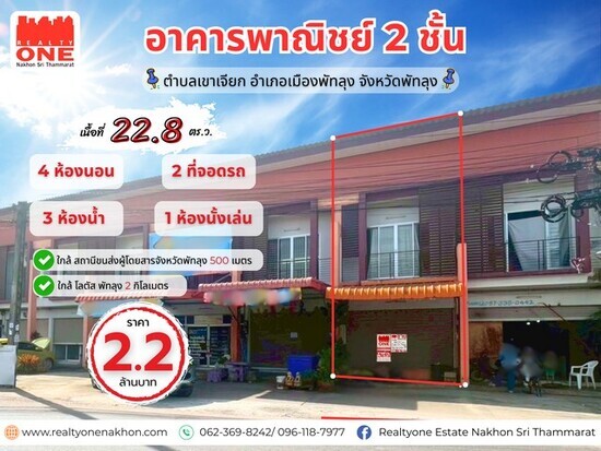 อาคารพาณิชย์ 2 ชั้น ใกล้ชุมชนเเละ บขส.พัทลุง เหมาะสำหรับค้าขาย หรือทำสำนักงาน