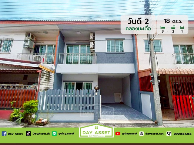 หมู่บ้านวันดี 2 คลองมะเดื่อ กระทุ่มแบน รสัญจรสะดวกสบาย ใกล้เมืองมหาชัย-กระทุ่มแบน เนื้อที 18 ตร.ว. ขายเพียง 1,950,000 ล้านบาท