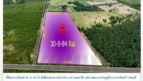 ที่ดินสีม่วง สร้างโรงงาน สร้างโกดัง เกาะจันทร์ เนื้อที่ 30-0-84 ไร่ ไร่ละ 2.2 ล้าน ต.ท่าบุญมี อ.เกาะจันทร์ จ.ชลบุรี