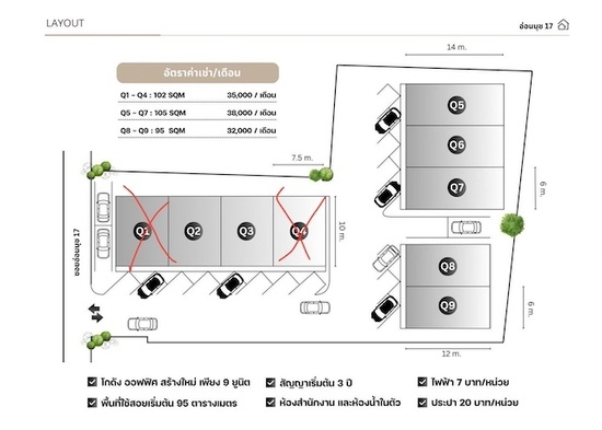 เงื่อนไข: มัดจำ 2 เดือน + ล่วงหน้า 1 เดือน