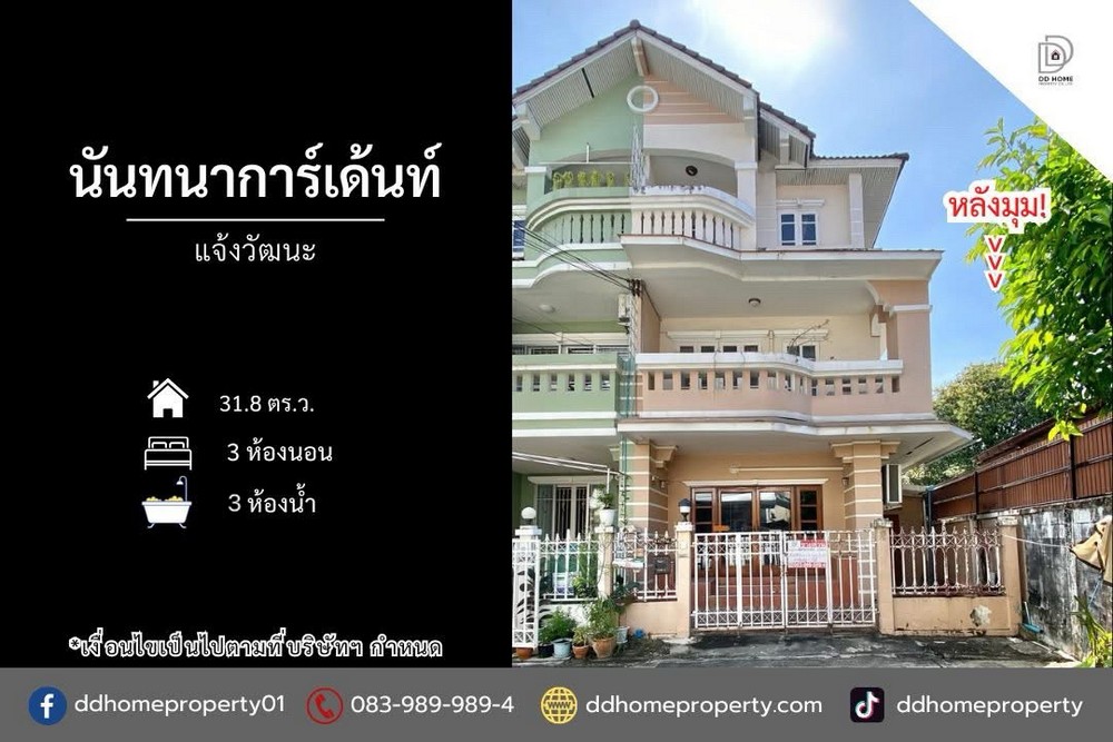 ขายหมู่บ้านนันทนาการ์เด้นท์ แจ้งวัฒนะ หลังมุม (DD002246)