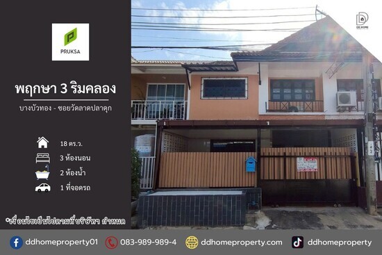 ขายหมู่บ้านพฤกษา3ริมคลอง บางบัวทอง ซอยวัดลาดปลาดุก (DD002280)