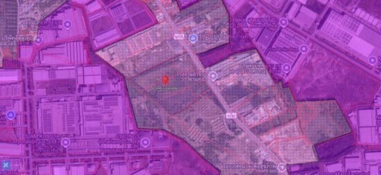 ขายที่ดิน 46 ไร่ ผังสีสีม่วงจุดขาว ถนนเส้น 3127 ที่ดิน shape สวยติดถนน ติด Amata City ชลบุรี