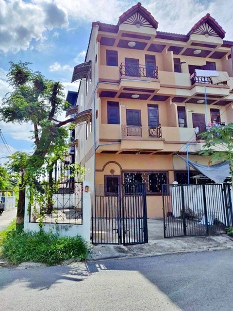 BTS OnNut 4km away. Sukhumvit 77 MRT Srinuch 2 km 3 story corner Townhouse for rent 4 bed oi Onnut 36-44 S3 bath Near Seacon Square Srinakarin 900 m. 36 sq.wa. 430 sq.m. 2 parking spaces Fully furnished with appliances 19,998 B-M Suitable for residence home office or online business Near Paradise Park 1 km. Onnut area convenient access to main roads
