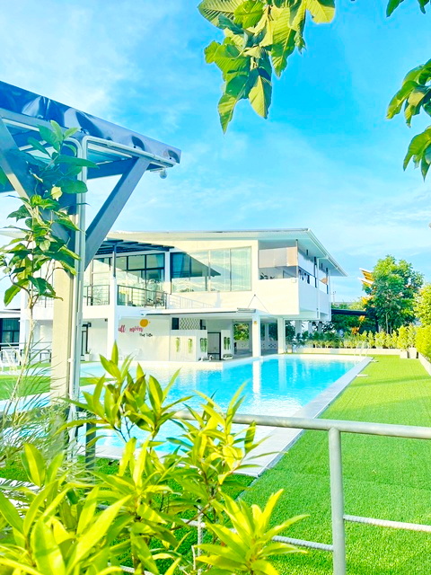สระว่ายน้ำระบบเกลือขนาดใหญ่ พร้อมสระเด็กระบบเกลือ พื้นที่สวนกว้างสำหรับจัดกิจกรรม กางเต็นท์ดูดาว และพักผ่อนท่ามกลางธรรมชาติ