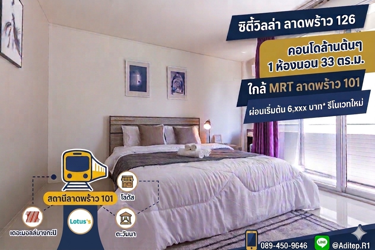 `#ขายคอนโดลาดพร้าว` `#CityVillaลาดพร้าว126` `#คอนโดใกล้MRTลาดพร้าว101` `#คอนโดสายสีเหลือง` `#คอนโดราคาล้านต้น` `#คอนโดรีโนเวท` `#ผ่อนถูกกว่าเช่า` `#คอนโดบางกะปิ` `#คอนโดใกล้มหาวิทยาลัยราม` `#คอนโดเฟอร์ครบพร้อมอยู่` `#คอนโดหลังแรก` `#ศุภาลัยซิตี้วิลล่า` `#คอนโดเดอะมอลล์บางกะปิ#คอนโดใกล้รถไฟฟ้า`