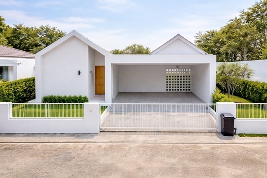 Wat PhraPhutthabatNoi Single-story detached house with 3 bed 3 bath near local market 800 m. and Wat Phra Phutthabat Noi 900 m. land size 38 sq.wa. usable area 150 sq.m. price 14,999 B-M. minimalist style with courtyard peaceful mountain view ideal for living close to nature in Kaeng Khoi with easy access to Saraburi city