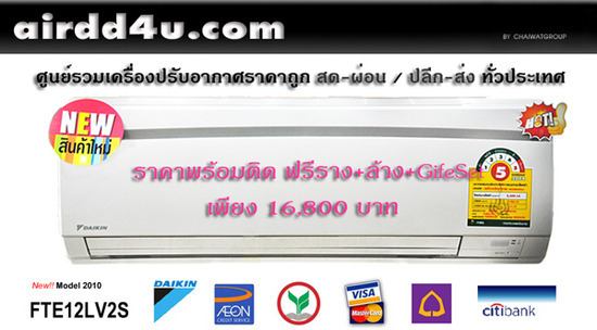 airdd4u ระบายสินค้า Model 2010 DAIKIN FTE09LV2S 8900 BTU. ติดผนัง เบอร์ 5 ราคา 11,500 บาท โทร.02-950-0607.