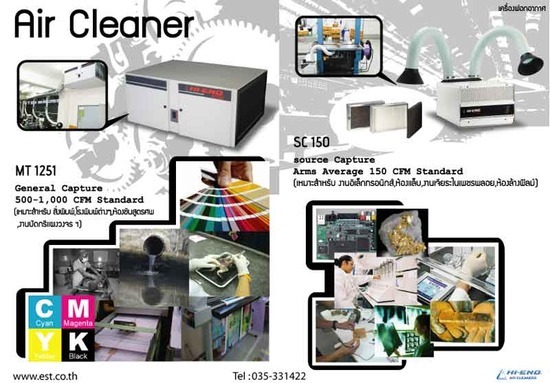 เครื่องฟอกอากาศสำหรับอุตสาหกรรม ซึ่งมีไส้กรองหลายชั้น หลายแบบ ตั้งแต่ไส้กรองหยาบ (Pre-filter) ไส้กรองปานกลาง (Medium Filter) ไส้กรองละเอียด (Hepa Filter) และไส้กรองกลิ่น (Carbon Filter) มีเครื่องขนาดเล็กและใหญ่ มีแบบกรองทั่วไปและกรองเฉพาะจุด โดยทางบริษัทฯได้เลือกสรรไส้กรองที่มีคุณภาพ และมีประสิทธิภาพสูงจากสหรัฐอเมริกาไว้บริการ