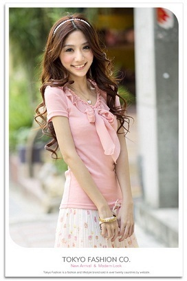 ขายส่ง Tokyo Fashion เสื้อยืดแขนสั้นสีชมพู แต่งระบายผ้าชีฟองที่คอเสื้อผูกโบว์ช่วงอก http://www.weloveshopping.com/template/w09/showproduct.php?pid=16228204&shopid=28677 Size : M