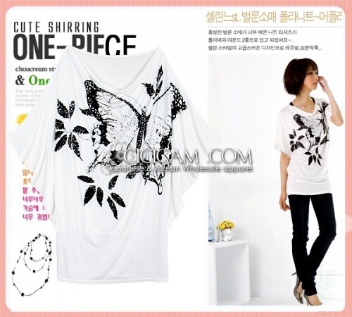 เสื้อยืดคอปาด พิมพ์ลายผีเสี้อน่ารักมากๆ สีขาว Brand - cicicam