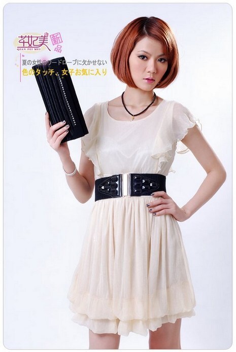 มาใหม่ค่ะ!! ชุดแซกแขนระบายสีครีม apricot ชายกระโปรงเป็นทรงบอลลูนนิดๆ (มีเข็มขัดให้คล้ายๆในแบบจ้า) Brand QFM Size : M