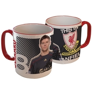 เป็นแก้วน้ำสีดำรูปสตีเว่นเจอร์ราดพร้อมลายเซ็นต์สตีเว่น เจอร์ราด