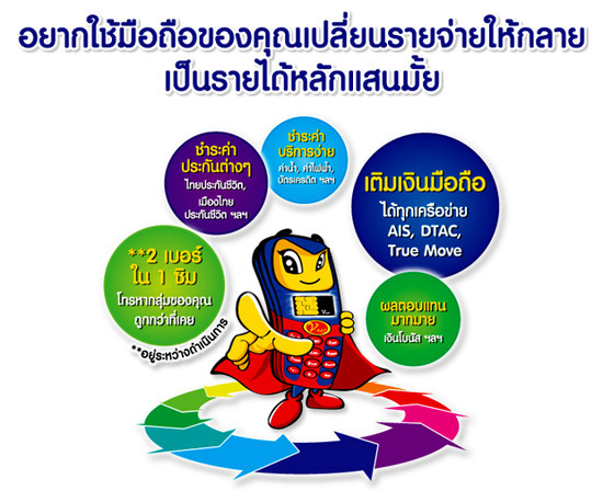 เพื่อทำการชำระค่าบริการต่างๆ และ การเติมเงินโทรศัพท์ผ่านทางมือถือ