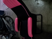 เก้าอี้สีชมพูคะสภาพใหม่เอี่ยม สามารถปรับเอนได้คะ มีที่พักแขนนึ่มคะ